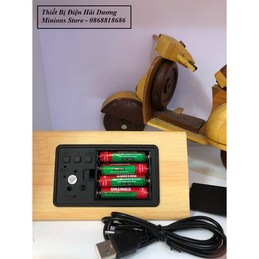 3. Chế độ cảm ứng tiết kiệm điện: Khi để im lặng đồng hồ sẽ tự tắt (có âm thanh hoặc vỗ tay sẽ hiện màn hình) : Ân nút Down hiện oN:5d là bật chế độ tiết kiệm, hiện --:5d là chế độ luôn bật màn hình thời gian