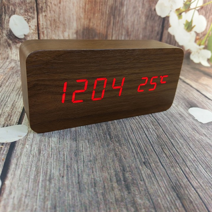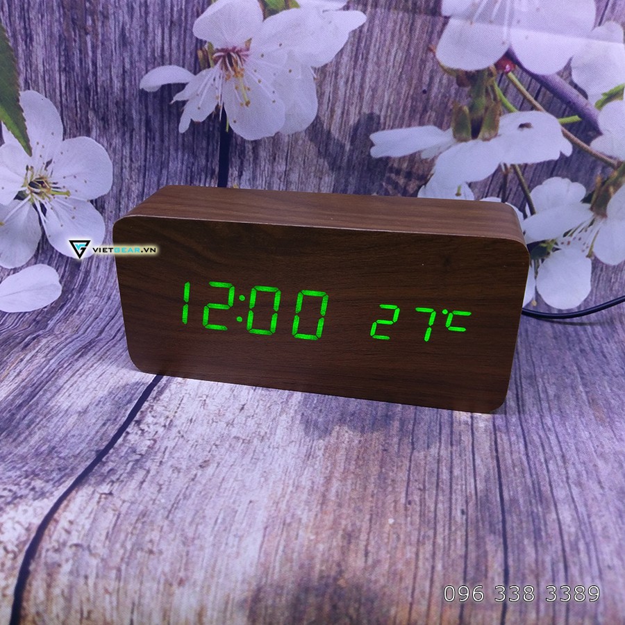 Đồng hồ gỗ led V1, vỏ nâuĐồng hồ để bàn, đồng hồ gỗ led hình chữ nhật