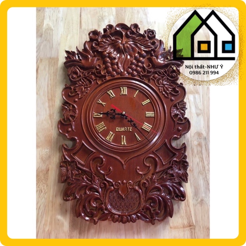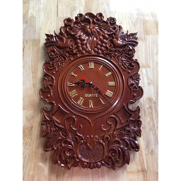 Giới thiệu Đồng hồ gỗ pơ-mu cao cấp đầy đủ kim máy giá rẻ cao 48cm rộng 30cm
