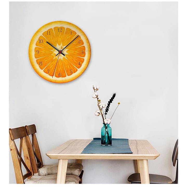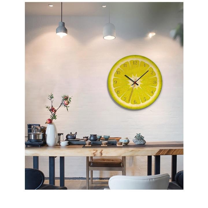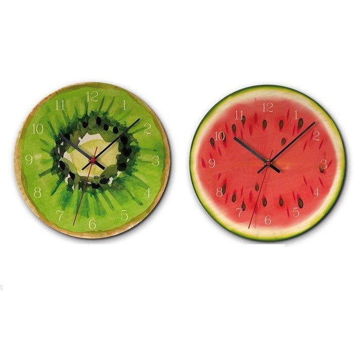 Đồng hồ bằng gỗ gồm các loại trái cây như trái chanh, trái cam, dưa hấu