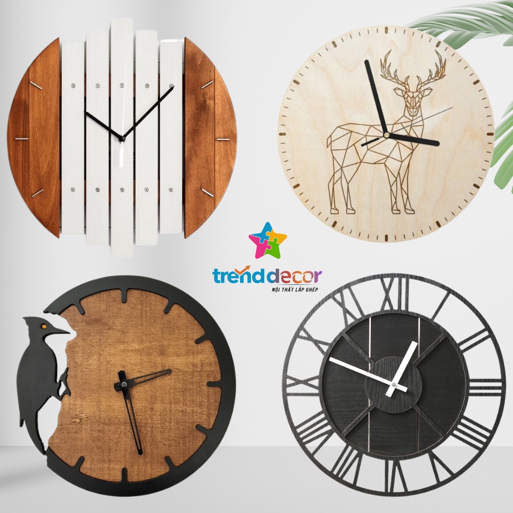 Đồng hồ gỗ treo tường kim trôi, 20 Mẫu Đồng hồ gỗ trang trí thiết kế theo yêu cầu (Tặng Kèm Pin)