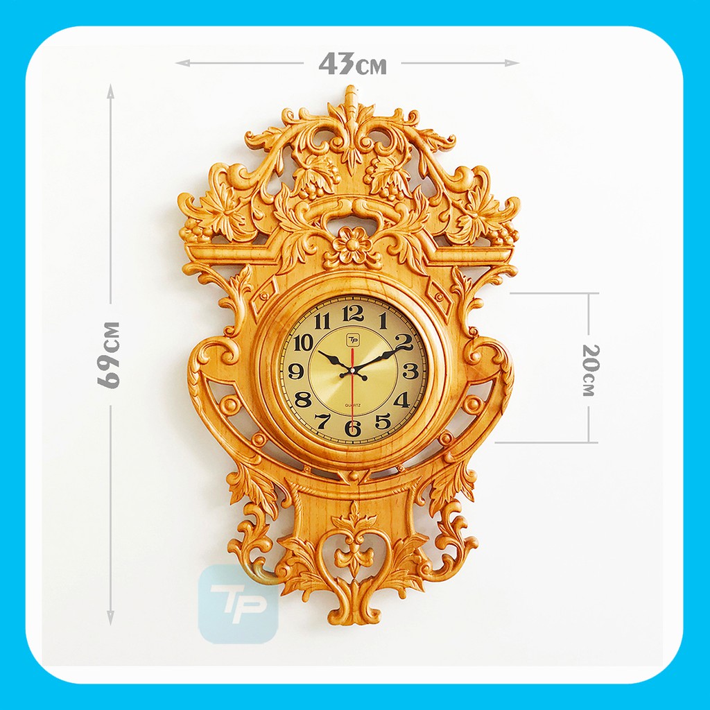 * ĐỒNG HỒ TRANG TRÍ TREO TƯỜNG GỖ TP2 được làm bằng gỗ tự nhiên, điêu khắc tỉ mỉ, có giá trị nghệ thuật cao.- Mã sản phẩm: DHG-TP2