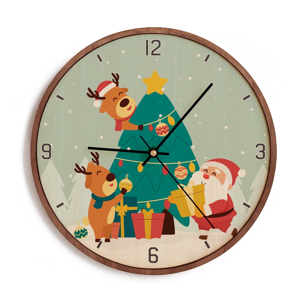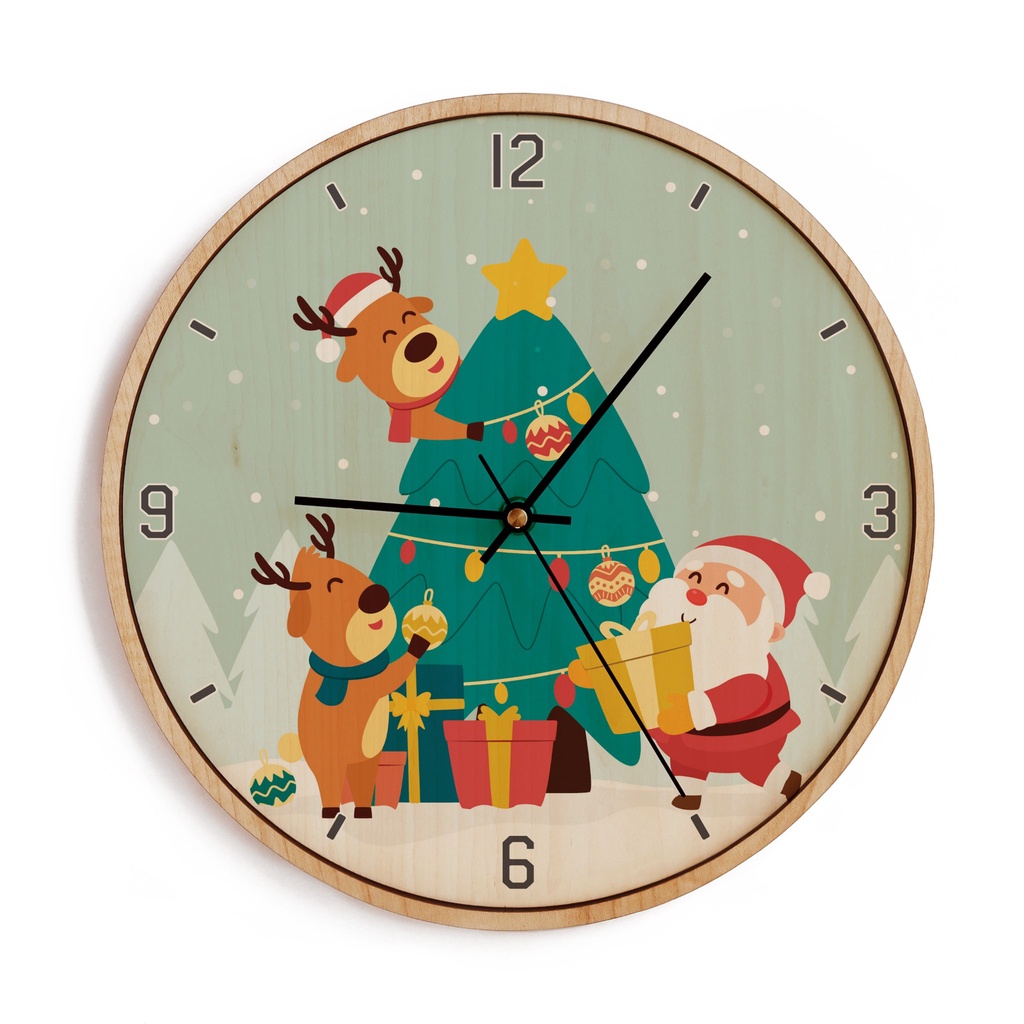 Đồng hồ gỗ treo tường | Trang trí giáng sinh | NAU FACTORY