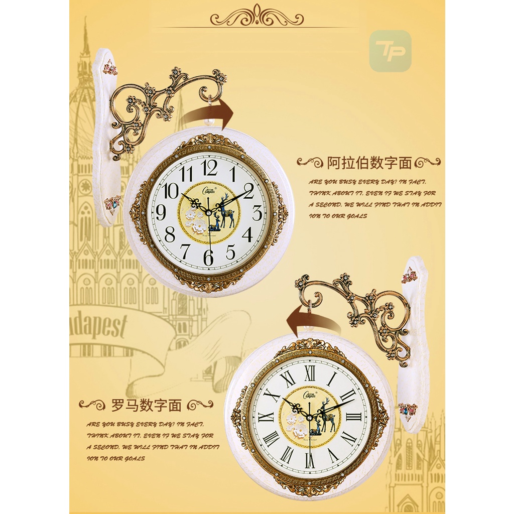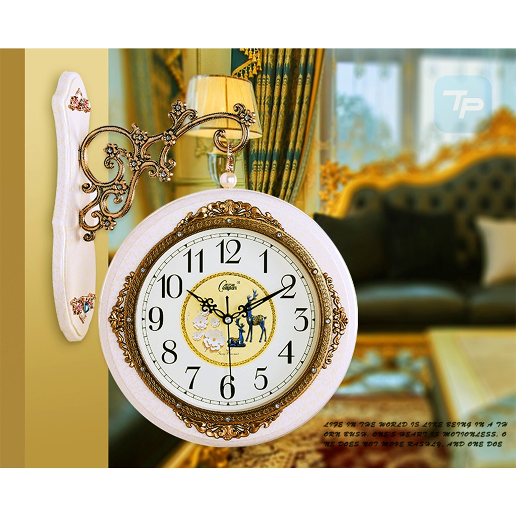 * ĐỒNG HỒ HAI MẶT TREO TƯỜNG 25 được thiết kế theo phong cách Châu Âu, tô đậm vẻ sang trọng quý phái cho ngôi nhà của bạn. Sẽ phát huy được giá trị sử dụng khi treo ở hành lang hay cột nhà những nơi góc nhìn bị hạn chế.---- THÔNG TIN SẢN PHẨM: