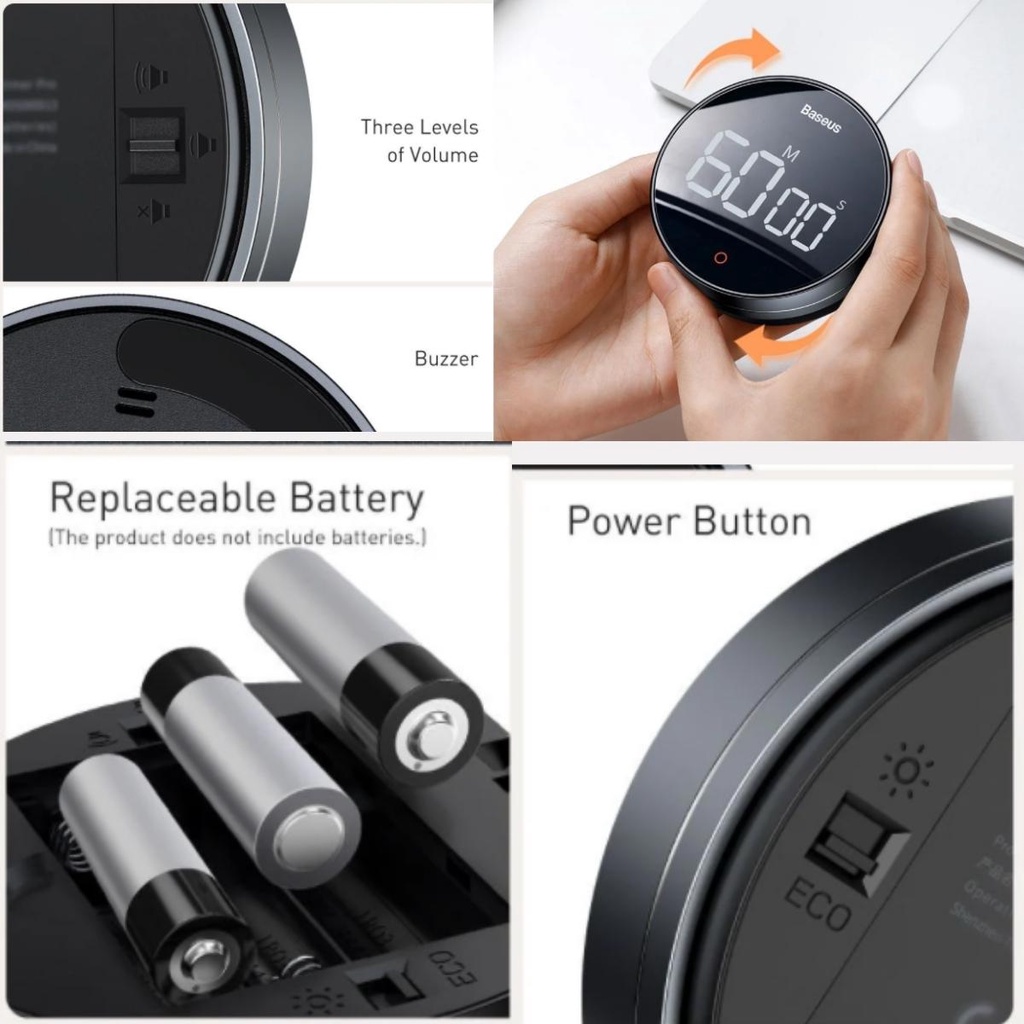 Giới thiệu Đồng Hồ Hẹn Giờ Đếm Ngược Từ Tính BASEUS 4.5V Màn Hình LED Có Âm Thanh Tiện Dụng Cho Để Bàn Văn Phòng Nhà Bếp LV716