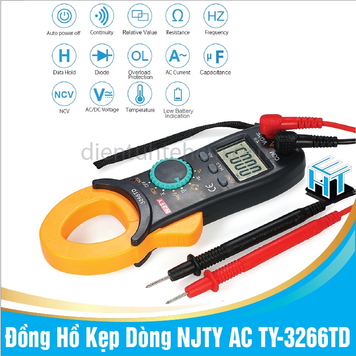 Đồng Hồ Kẹp Dòng TY-3266TD - Nhiều chức năngKìm kẹp NJTY 3266TD là thiết bị chuyên dụng dùng để đo dòng điện với dải 0.1A - 400A. Ngoài ra Kìm kẹp dòng NJTY 3266TD còn có các chức năng khác của một đồng hồ đo vạn năng.