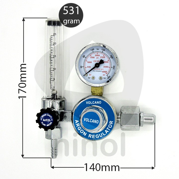 Đồng hồ khí Argon hay còn gọi là đồng hồ điều áp, van điều khiển lưu lượng khí, dùng để đo và kiểm soát lưu lượng khí ra từ bình trong quá trình làm việc.