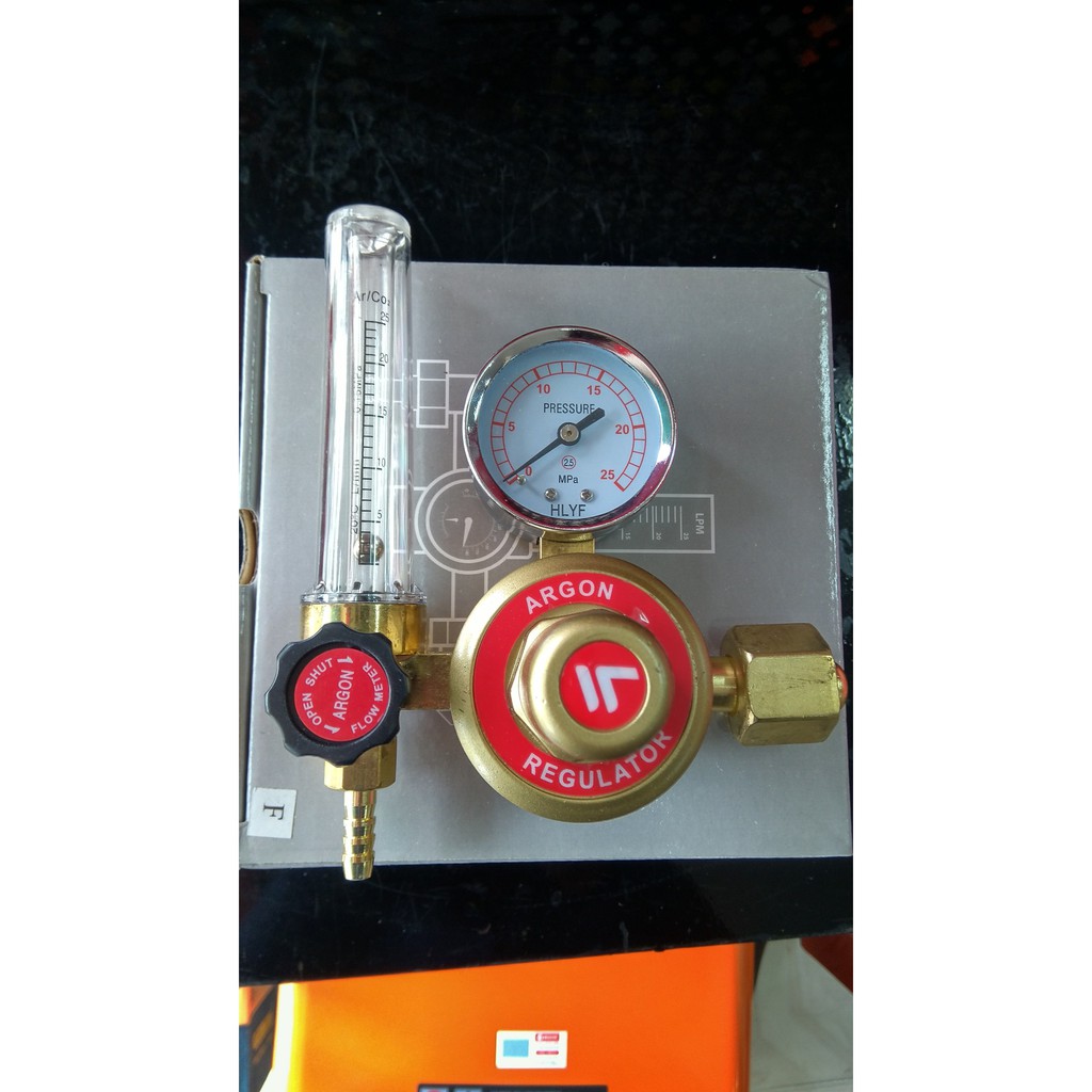 - Đồng hồ khí- đồng hồ điều áp Argon dùng để do điều chỉnh áp suất làm việc chính xác với yêu cầu khi hàn và đo áp suất khí còn lại trong bình khí Argon, thường được sử dụng trong hàn Tig
