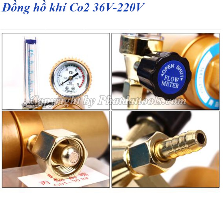 Giới thiệu Đồng hồ khí Co2 36V-220V Sấy Khí tiết kiệm Theo Công Nghệ Nhật Bản Phụ Kiện Máy Hàn