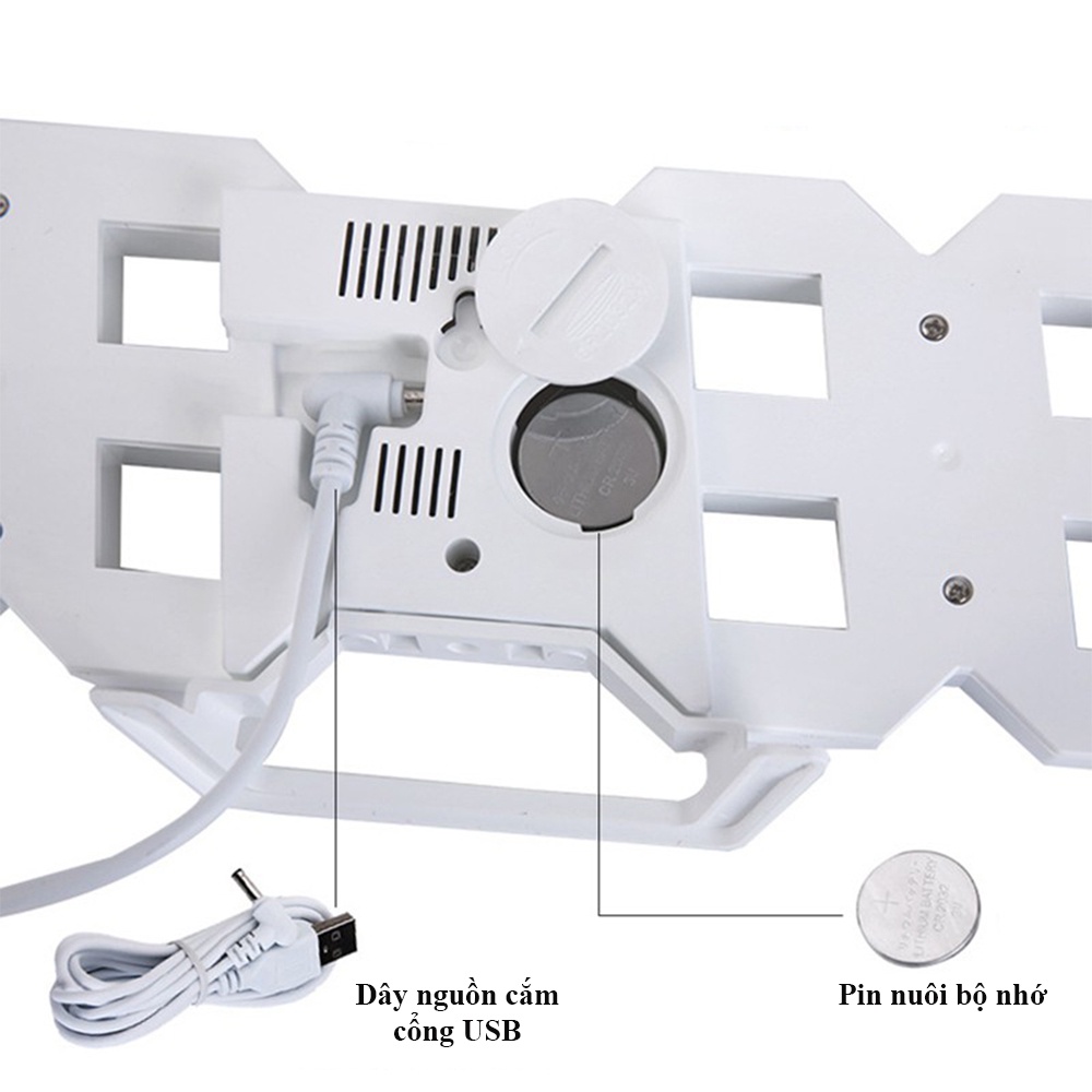 LUU Ý : PIN CỦA ĐỒNG HỒ CHỈ CÓ CHỨC NĂNG LUU GIỮ CÀI ĐẶT, ĐỒNG HỒ VẪN PHẢI CẮM ĐIỆN (đồng hồ được tặng kèm dây cáp và tờ hướng dẫn) (tặng kèm theo củ sạc 5V)