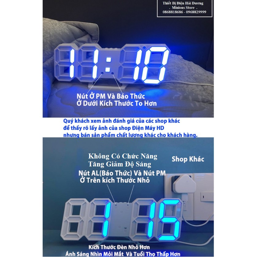 Trên thị trường đang có hàng loại 2 tuổi thọ cực thấp nhưng gắn ảnh của shop để bán, các bạn có thể xem review của khách, sản phẩm của shop thiết kế hơi nghiêng có 2 dấu báo thức và al ở dưới cùng, còn hàng loại 2 ở trên đầuĐặc biệt đồng hồ shop có chức năng tăng giảm ánh sáng và cảm biến ánh sáng theo ngày đêm mà shop khác không có