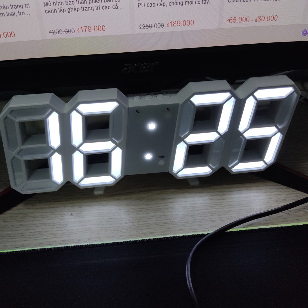 Nhà cửa & Đời sống > Trang trí nhà cửa > Đồng hồ || Đồng hồ LED 3D treo tường, để bàn thông minh Smart Clock, phiên bản màu trắngCòn hàng