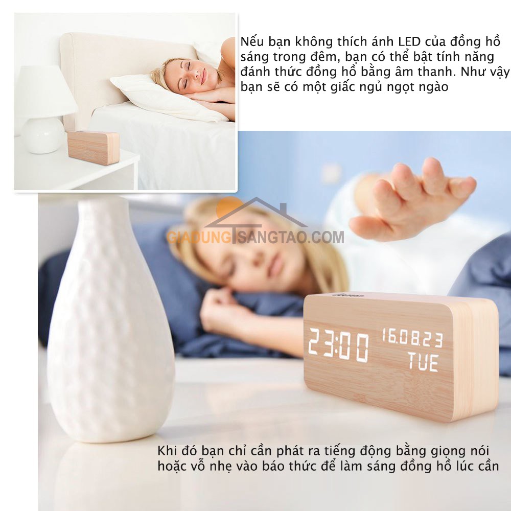 Tiết kiệm năng lượng với tính năng đánh thức bằng âm thanh. Nếu chế độ này được kích hoạt thì đồng hồ sáng sau 15 giây sẽ tắt, chỉ khi xung quanh có âm thanh >=60DB thì đồng hồ mới sáng để hiển thị giờ.
