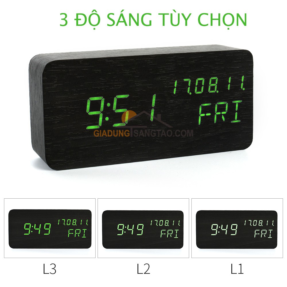 Đồng hồ LED báo thức đo nhiệt độ vỏ gỗ M2