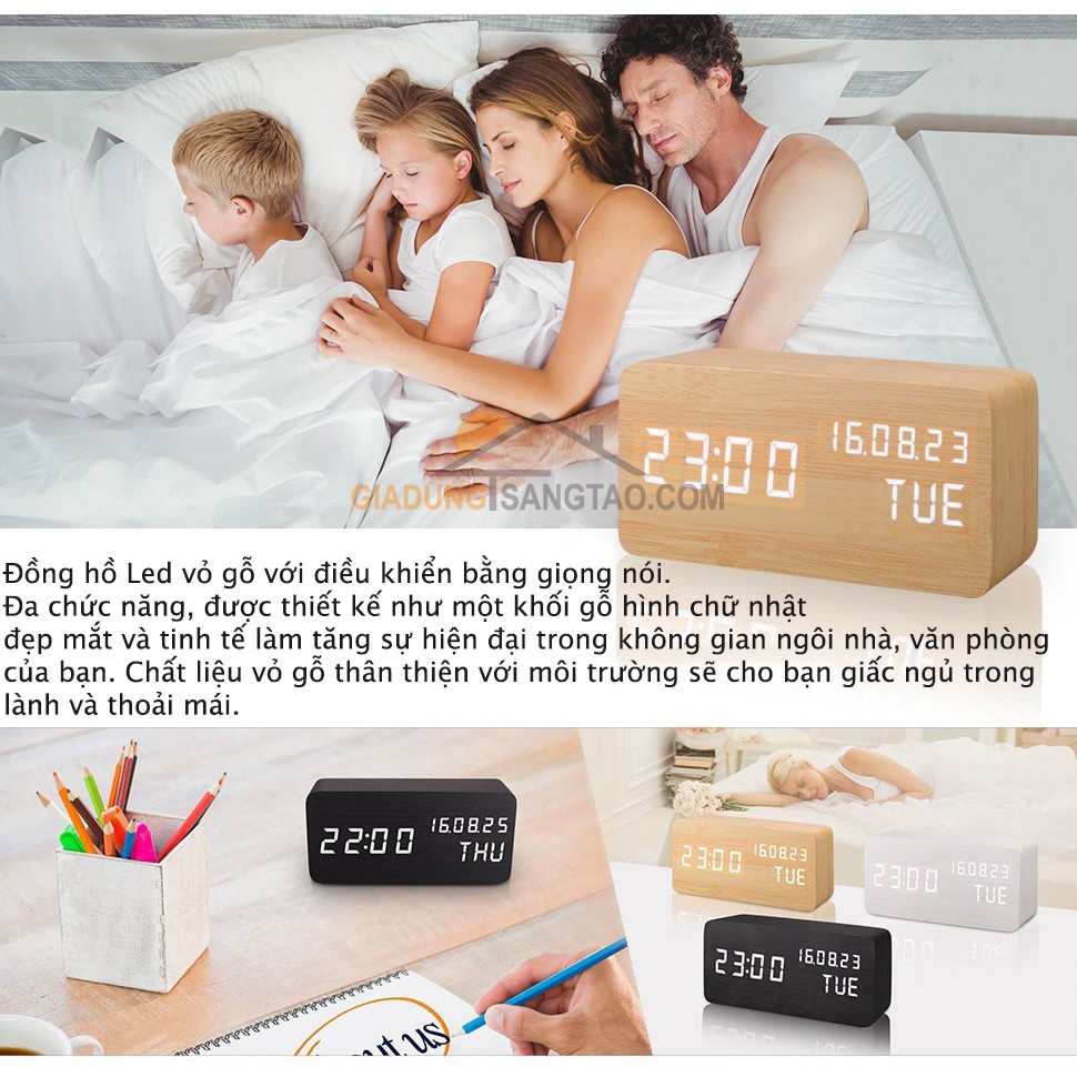Đồng hồ báo thức vỏ gỗ cao cấp M2 được thiết kế giống một khối gỗ hình chữ nhật, với vân gỗ tự nhiên sang trọng kết hợp đồng hồ LED điện tử hiện đại, tinh tế. Ngoài việc có thể hiển thị ngày tháng năm, nhiệt độ, giờ phút nó còn được trang bị cảm biến âm thanh để có thể đánh thức đồng hồ bằng cái vỗ tay hoặc giọng nói với độ ồn >=60DB. Sản phẩm phù hợp với bàn làm việc văn phòng công sở trang trí, xem giờ, báo thức. Làm quà tặng sang trọng lịch sự....