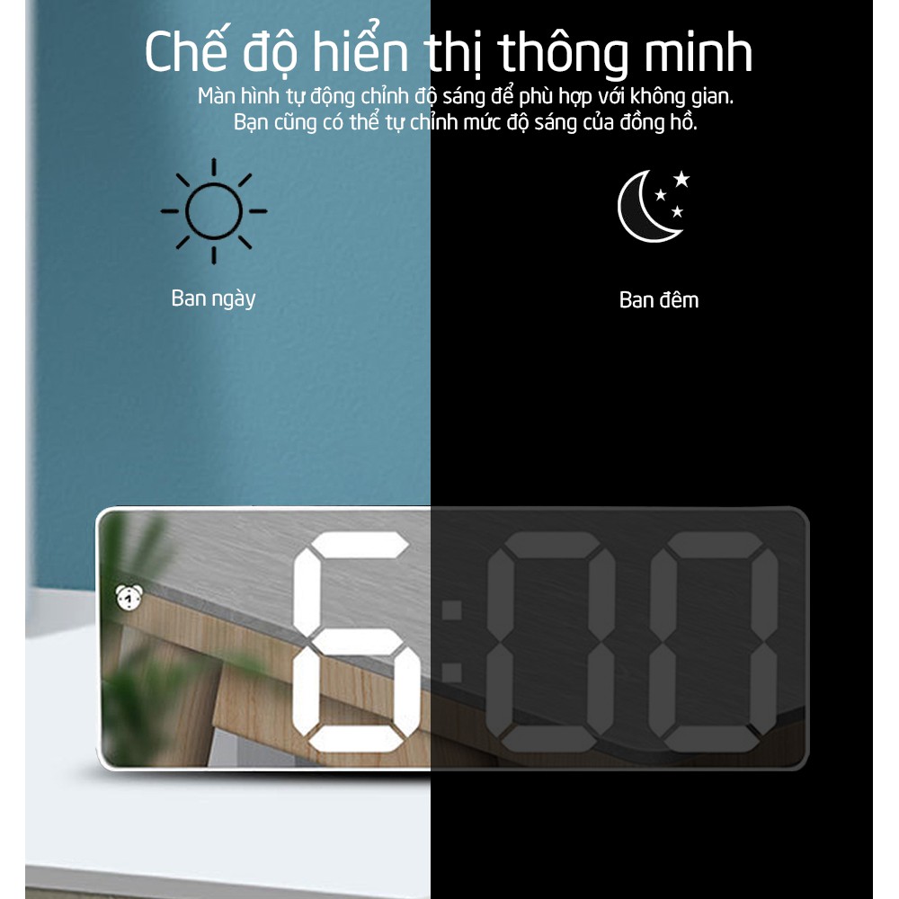 Nhà cửa & Đời sống > Trang trí nhà cửa > Đồng hồ || Đồng hồ led để bàn màn gương, hiển thị thời gian, nhiệt độ, chuông báo thức, cảm biến tự động mã G0712Còn hàng