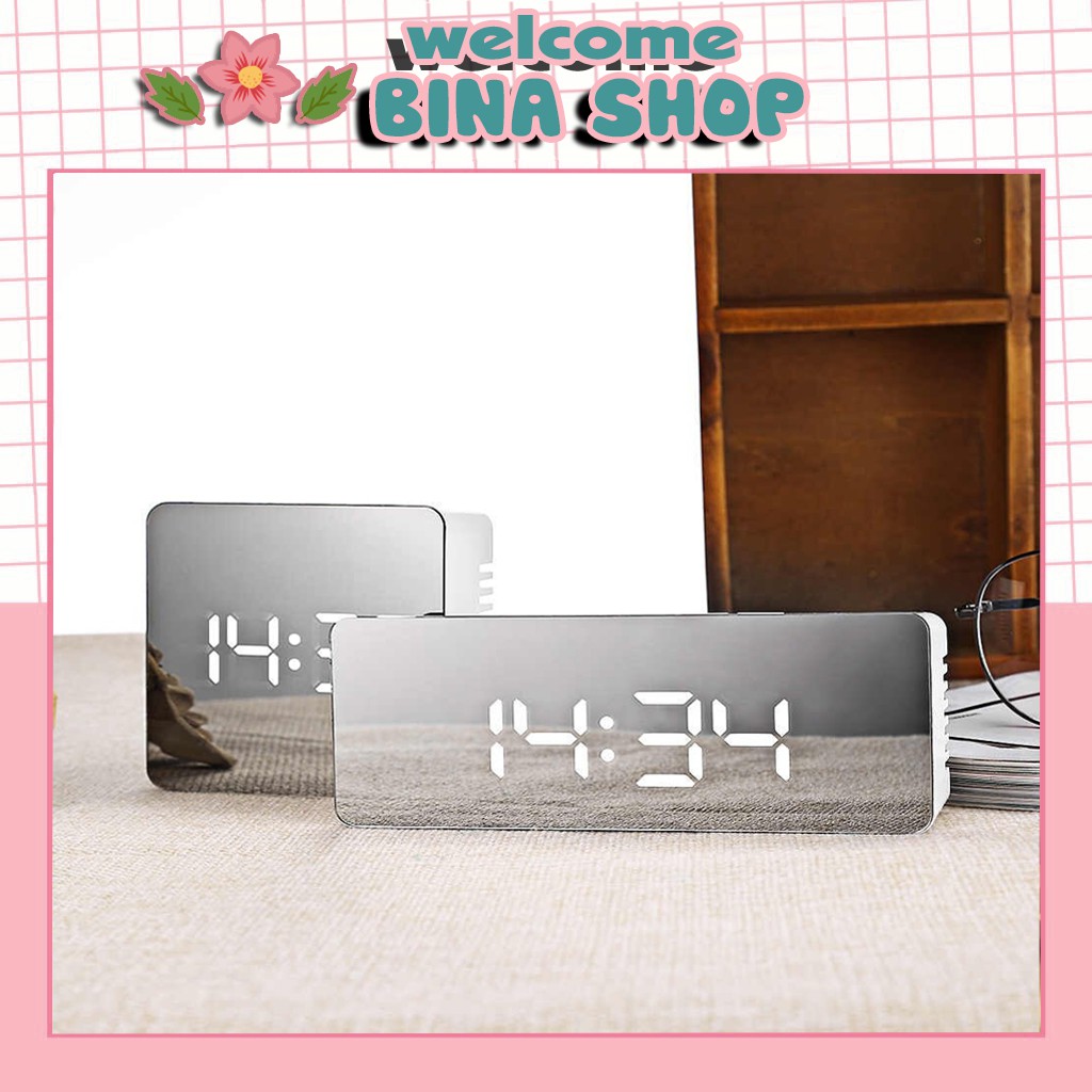 Đồng hồ led để bàn, mặt gương - Có dán chống xước - BinaShop - Tặng kèm hướng dẫn Tiếng Việt😍Thiết kế Led điện tử siêu hiện đại - Có chế độ báo thức - Mặt gương siêu sáng bóng 😍