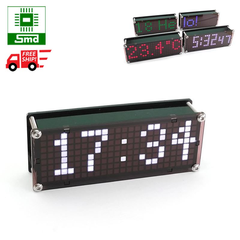 Giới thiệu Đồng hồ Led để bàn Matrix Mini V2 chạy chữ hiển thị ngày giờ nhiệt độ màu trắng xanh dương đỏ xanh lá