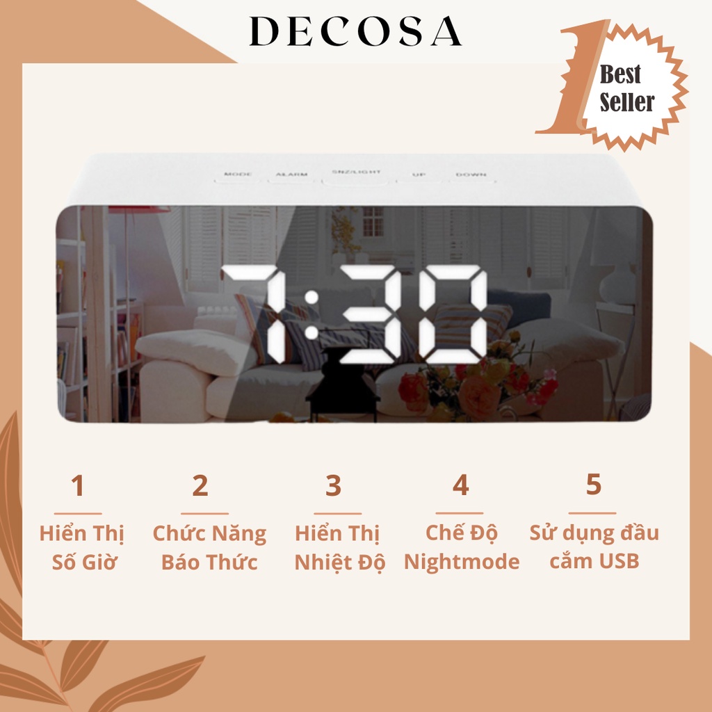Nhà cửa & Đời sống > Trang trí nhà cửa > Đồng hồ || Đồng hồ led để bàn thông minh mặt gương DECOSACòn hàng