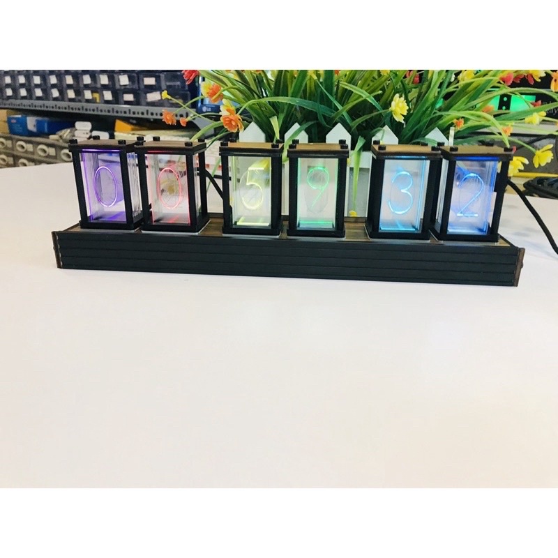 Nhà cửa & Đời sống > Trang trí nhà cửa > Đồng hồ || Đồng hồ led Nixie tube vỏ gỗ RGB trang trí để bàn cao cấpCòn hàng