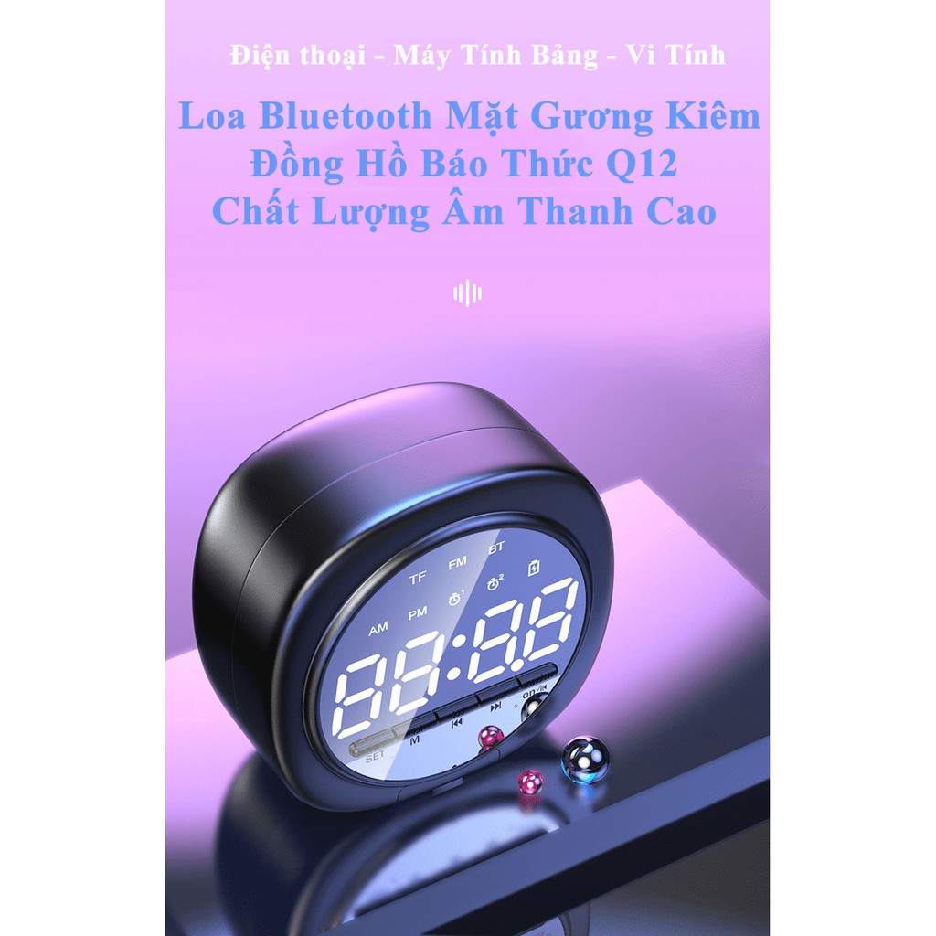 Đồng Hồ Loa Q12 Bluetooth Đa năng Mặt Gương Phát nhạc - Đài FM - Báo Thức - VL