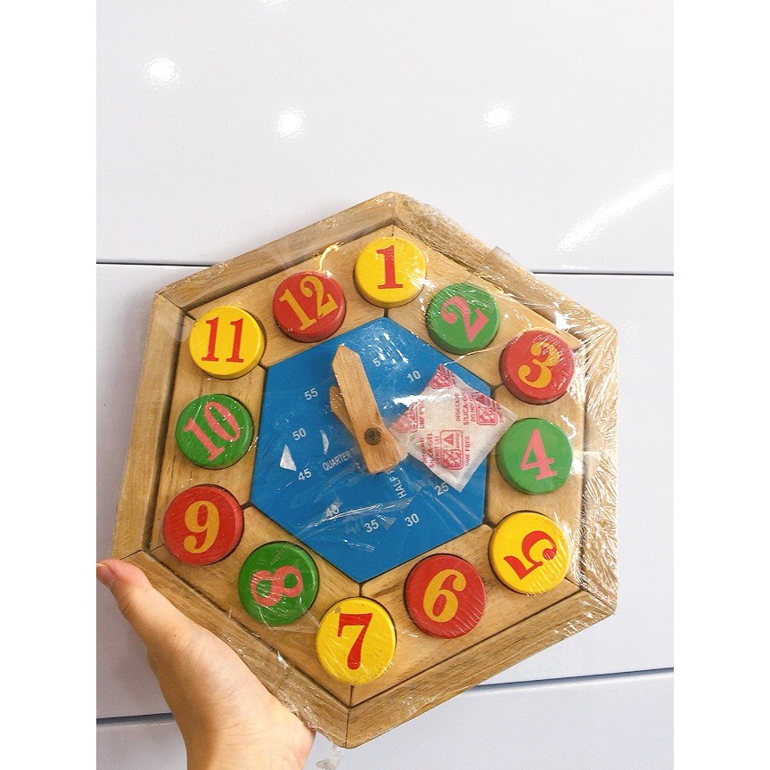 Chất liệu gỗ tự nhiên, màu sơn an toànĐồng hồ lục giác cùng các hình khối con số được in nổi