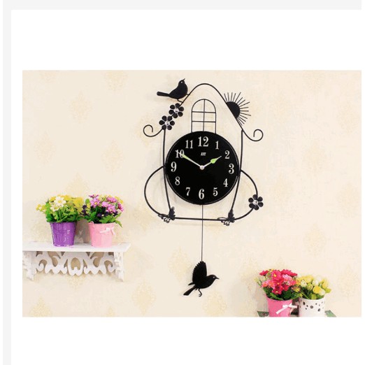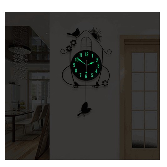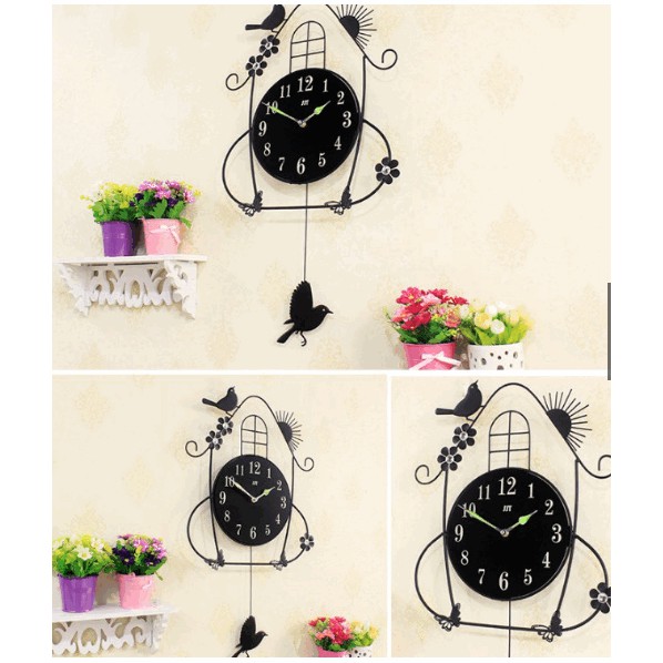 Chú chim nhỏ phía bên dưới đồng hồ đong đưa qua lại, rất sinh động và vui mắt.