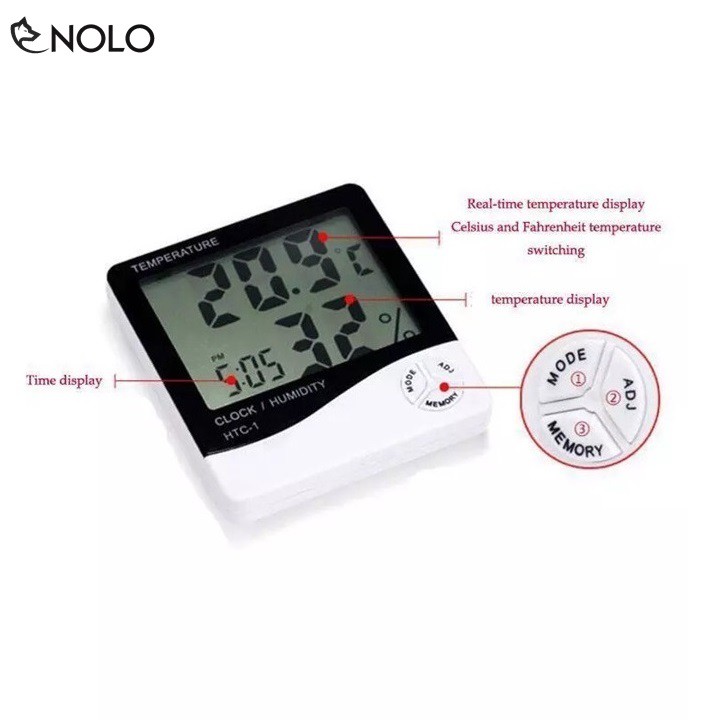 Đồng Hồ Đo Nhiệt Độ Độ Ẩm Không Khí Trong Phòng HTC-1 Xài 1 Viên Pin AAAVừa làm đồng hồ xem thời gian, vừa hiển thị chính xác nhiệt độ và độ ẩm tại nơi đặt chiếc máy này