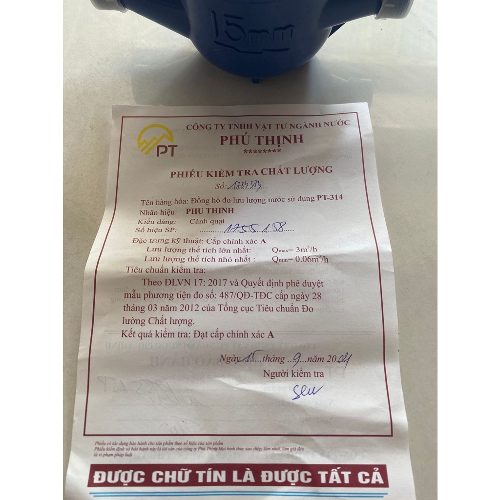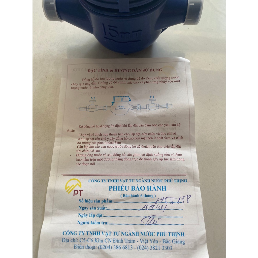 Giới thiệu Đồng hồ nước Phú Thịnh chính hãng, loại cao cấp có phiếu kiểm tra chất lượng và giấy bảo hành, đồng hồ đo lưu lượng nước