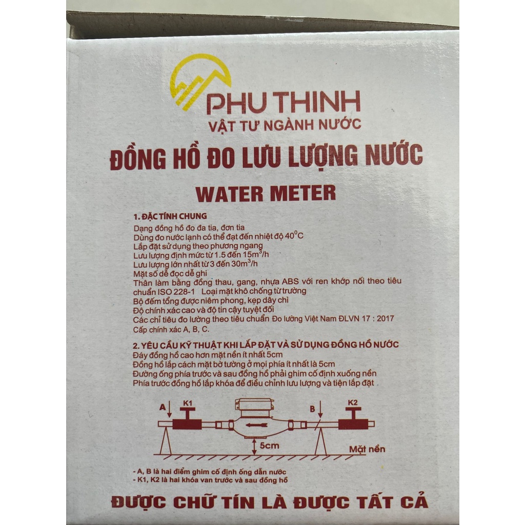 Nhà cửa & Đời sống > Dụng cụ & Thiết bị tiện ích > Dụng cụ > Dụng cụ đo lường || Đồng hồ nước Phú Thịnh chính hãng, loại cao cấp có phiếu kiểm tra chất lượng và giấy bảo hành, đồng hồ đo lưu lượng nướcCòn hàng