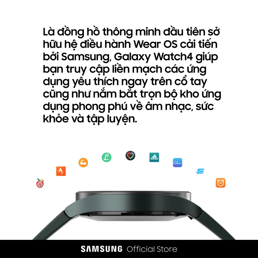 Là đồng hồ thông minh đầu tiên sở hữu hệ điều hành Wear OS cải tiến bởi Samsung, Galaxy Watch4 giúp bạn truy cập liền mạch các ứng dụng yêu thích ngay trên cổ tay cũng như nắm bắt trọn bộ kho ứng dụng phong phú về âm nhạc, sức khỏe và tập luyện.
