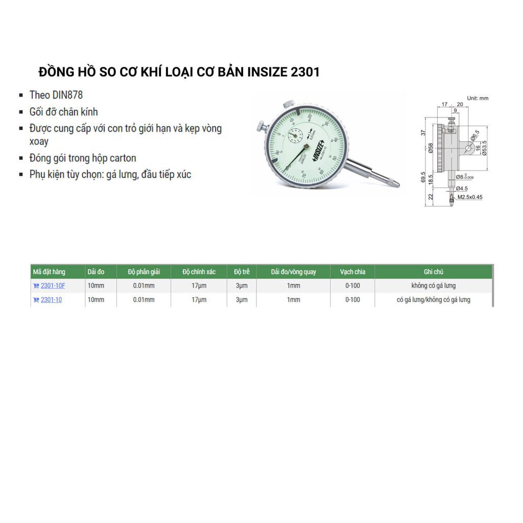 Giới thiệu Đồng hồ so cơ khí INSIZE 2301 Chính hãng Chất Lượng Cao