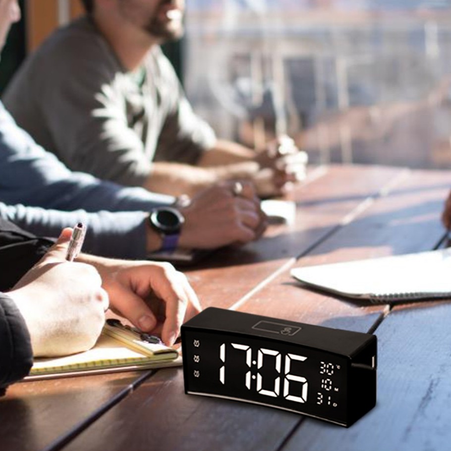 Đồng hồ LED để bàn nhiều chức năng là sản phẩm hữu ích không chỉ để xem giờ hay báo thức như các loại đồng hồ thông thường mà còn có thêm các chức năng đặc biệt như xem nhiệt độ và ngày tháng. Với thiết kế trẻ trung và thời trang, chiếc đồng hồ LED đa năng sẽ là một vật dụng trang trí mang tính thẩm mỹ cao cho bàn làm việc hay căn phòng của bạn. Ngoài ra, chữ số hiển thị trên đồng hồ có kích thước đủ lớn và rõ ràng giúp những người có thị lực không tốt cũng có thể đọc được chính xác.- Đồng hồ với thiết kế mặt gương cong có thể dùng làm gương soi, dễ dàng xem thông tin từ nhiều góc độ khác nhau.