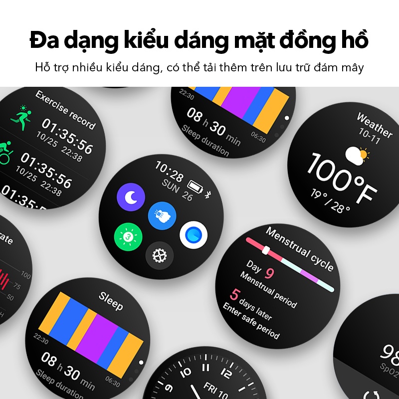 🔵Nhiều chế độ vận động: Chạy bộ ngoài trời, Chạy bộ trong nhà, Đi bộ ngoài trời, Đạp xe trong nhà, Đi bộ trong nhà, Bóng chày, Chèo thuyền, Máy chạy bộ, Hiển thị thông báo...
