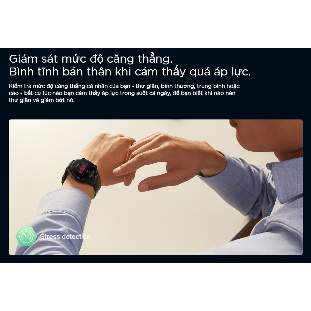 Hiểu biết Toàn diện về Sức khỏe. Độ bão hòa Oxy trong máu là một trong những yếu tố quan trọng nhất của sức khỏe con người, vì vậy GTR 2 được bổ sung thêm chức năng đo độ bão hòa oxy trong máu để giúp bạn luôn quan tâm đến sức khỏe của mình. Khi làm việc trí óc lâu dài, hoặc hoạt động thể chất như tham gia chạy marathon hoặc thể thao ngoài trời cường độ cao, hãy đo nồng độ oxy trong máu nếu bạn cảm thấy không thoải mái để giữ sức khỏe nhé.