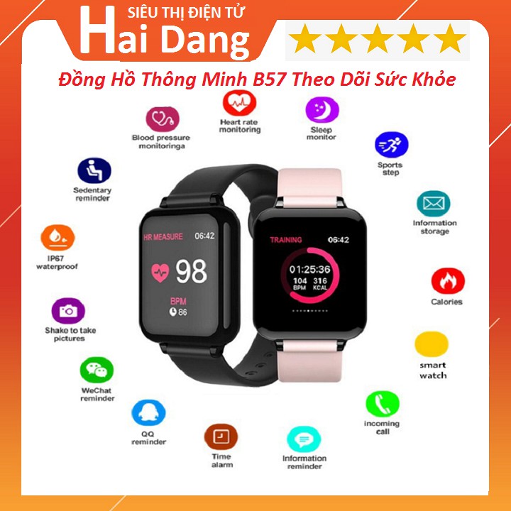 Đồng hồ B57 Cao Cấp thông minh Bluetooth Máy đo nhịp tim Theo dõi huyết áp Đồng hồ đeo tay chống nước cho iOS AndroidChú Ý: