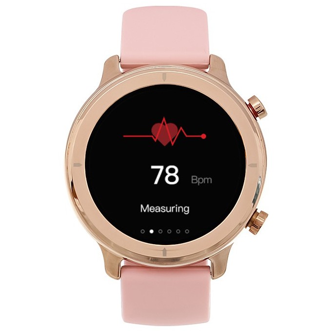 - Bộ sản phẩm gồm: Hộp, Đồng hồ, Sạc, Sách hướng dẫn.- Thiết kế trẻ trung, nữ tính với màu hồng sang trọng.