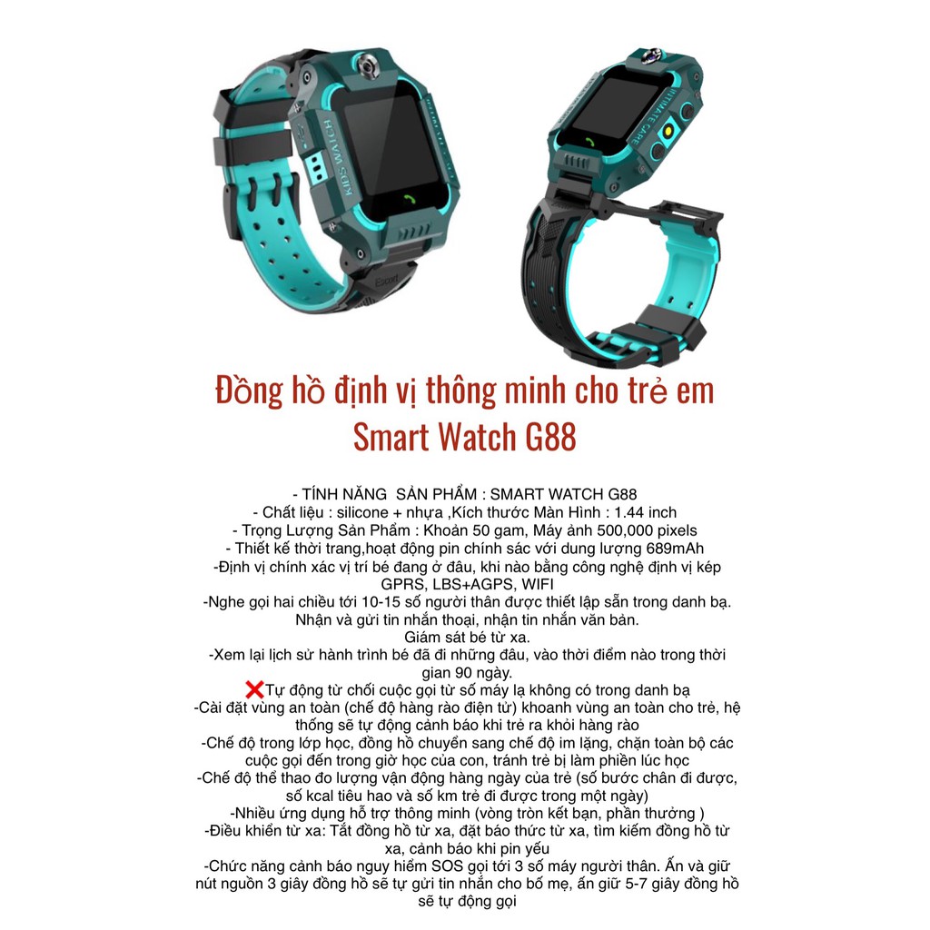 Điện Thoại & Phụ Kiện > Thiết bị đeo thông minh > Đồng hồ thông minh & Vòng đeo tay sức khỏe || Đồng hồ thông minh định vị cho trẻ em Smart Watch G88Còn hàng