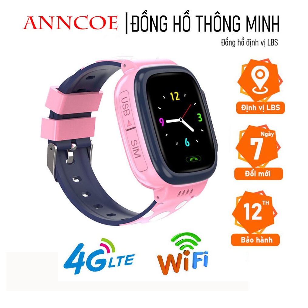 Đồng hồ thông minh định vị trẻ em ANNCOE A882 nghe gọi nhắn tin hai chiều định vị bằng sóng 4G + Wifi hỗ trợ tiếng việt