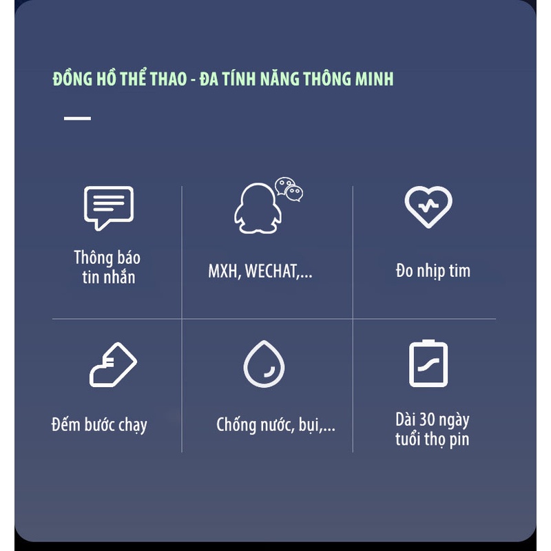 Nhiều chế độ tập thể thao được tích hợp, không cần thêm trên điện thoại, đeo trực tiếp vòng đeo tay để tập thể dục và nó có thể ghi lại tất cả dữ liệu thể thao của bạn.