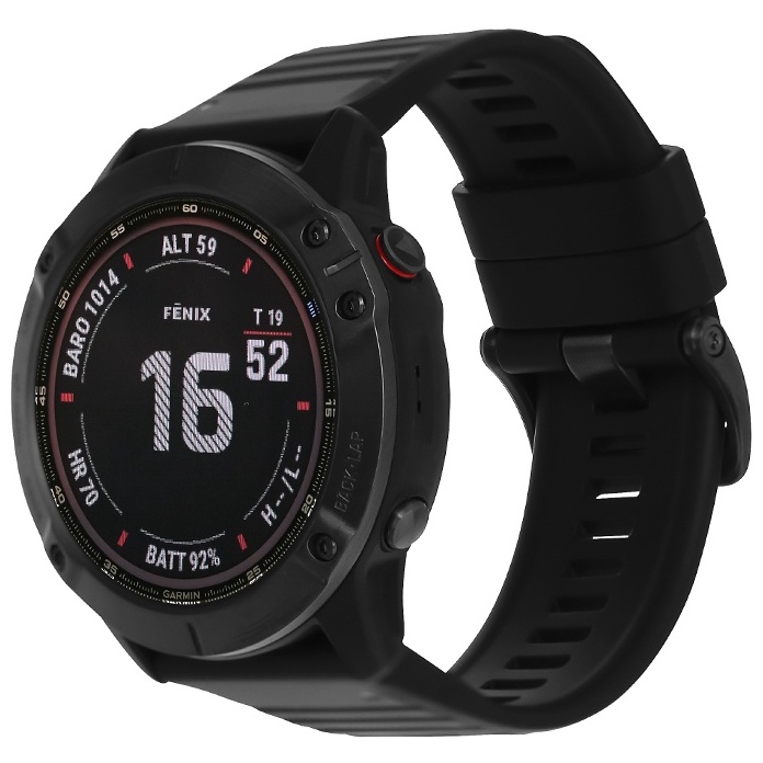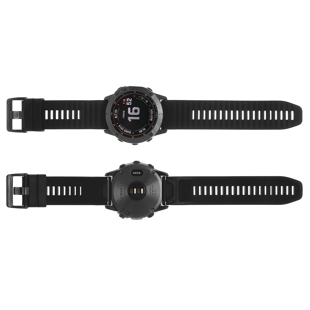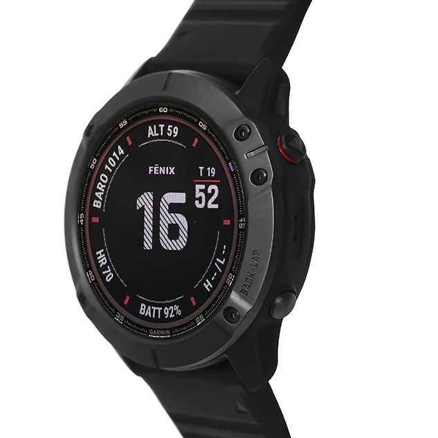 - Dây đeo silicone thiết kế ôm trọn cổ tay người đeo nhưng tạo cảm giác thoải mái, không bị đau cổ tay khi dùng lâu. Garmin Fenix 6X sử dụng 5 phím cứng để điều khiển và không có thao tác cảm ứng.