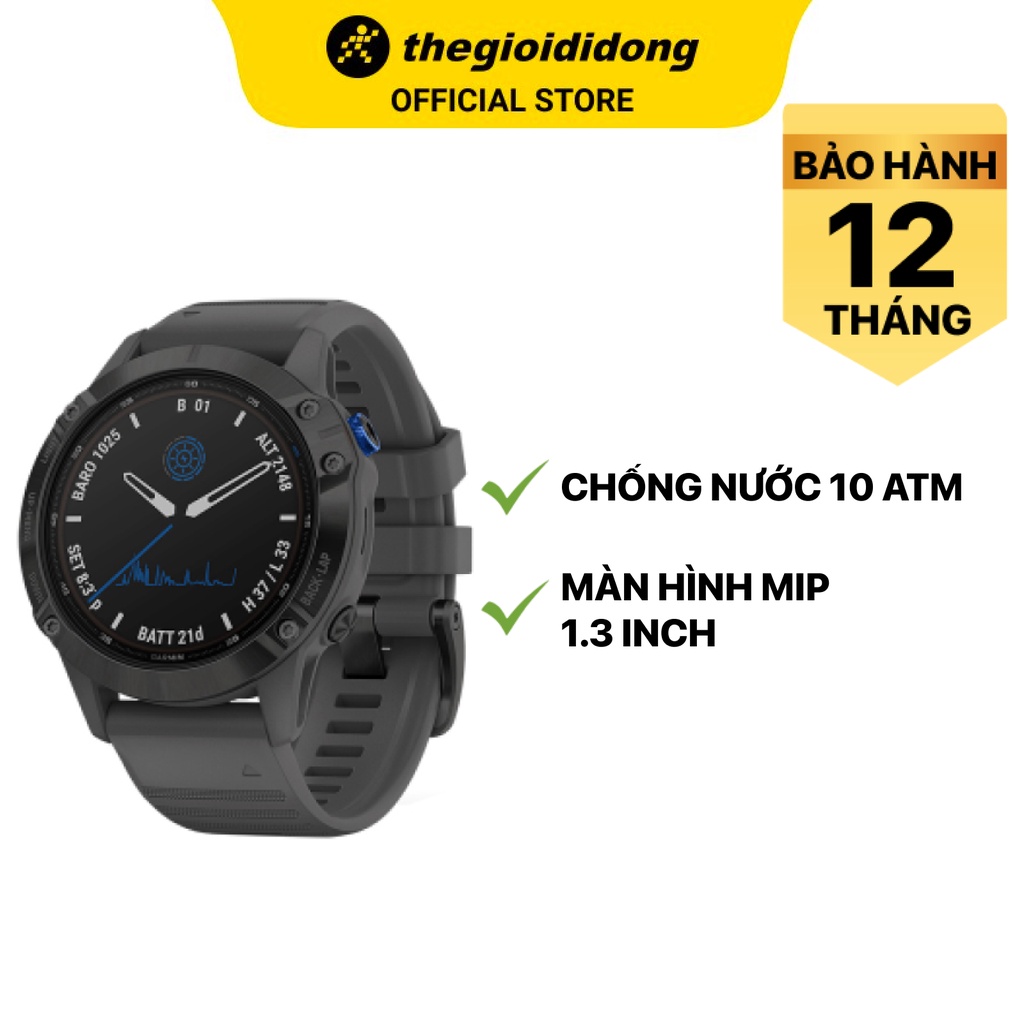 Điện Thoại & Phụ Kiện > Thiết bị đeo thông minh > Đồng hồ thông minh & Vòng đeo tay sức khỏe || Đồng hồ thông minh Garmin Fenix 6 Pro Solar kháng nước 10 ATM đo nồng độ SPO2 màn hình MIP 1.3" - Chính hãng BH 12 thángCòn hàng