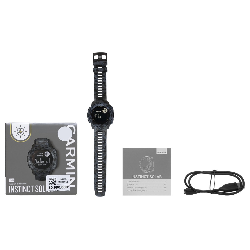 - Bộ sản phẩm gồm: Hộp, Sạc, Sách hướng dẫn.- Đồng hồ thông minh Garmin Instinct Solar được trang màn hình MIP 0.9 inch ( 128x128 pixels) cho màu sắc hiển thị sắc nét, sống động. Thiết kế dây đeo silicone cùng mặt kính cường lực và vỏ polyme tạo nên sự dẻo dai và bển bỉ cho đồng hồ.
