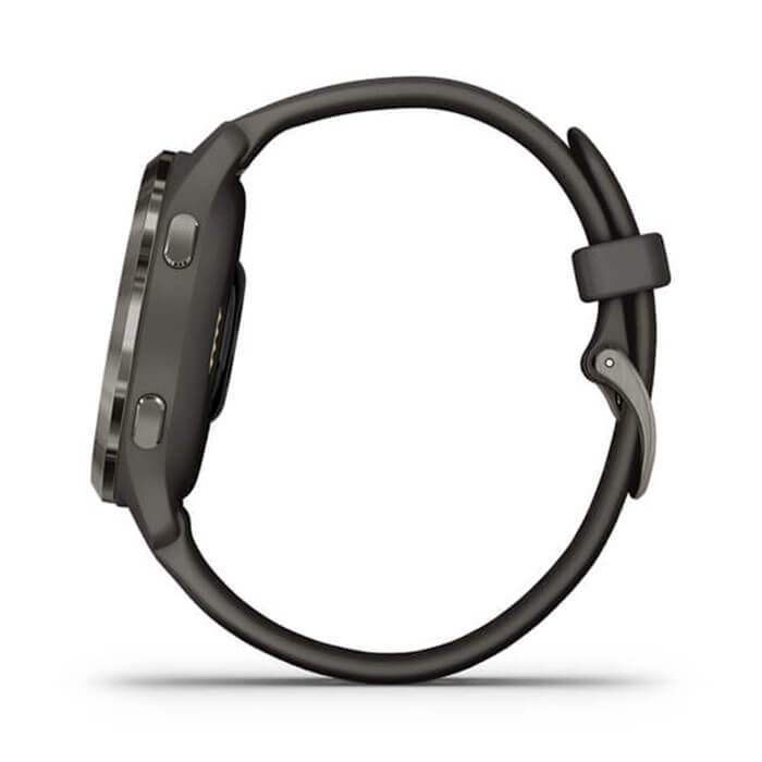 Garmin Venu 2S sở hữu đường kính 40 mm cùng dây 18 mm, sản phẩm này đều sở hữu viền bằng thép không gỉ.