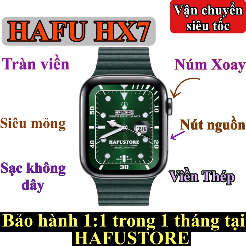 Đồng hồ thông minh HAFU HX7 tràn viền Seri7 viền thép mỏng smartwatch nhịp tim nghe gọi bluetooth