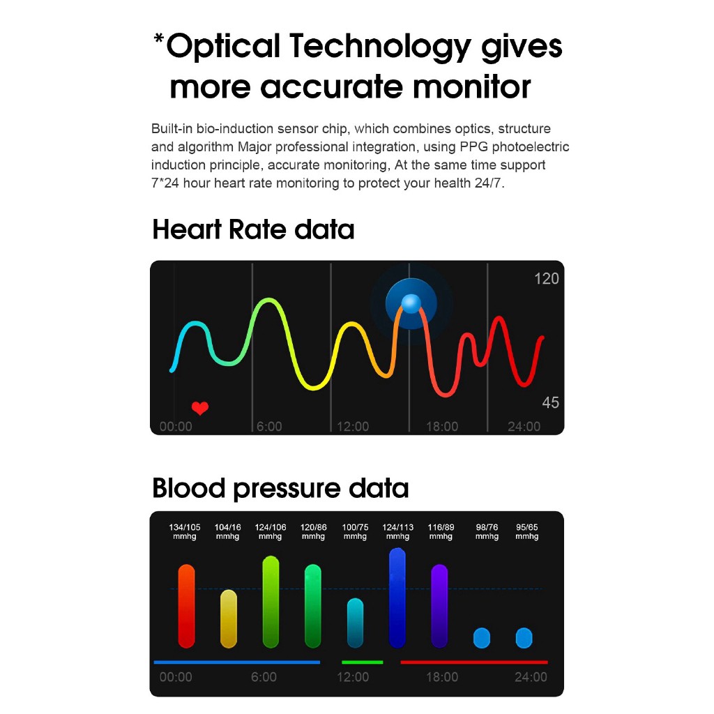 Nhịp tim, ECG, Huyết áp, Oxy máu, máy đếm bước chân, Đồng hồ bấm giờ, Đồng hồ báo thức, Điều khiển nhạc camera Camera từ xa