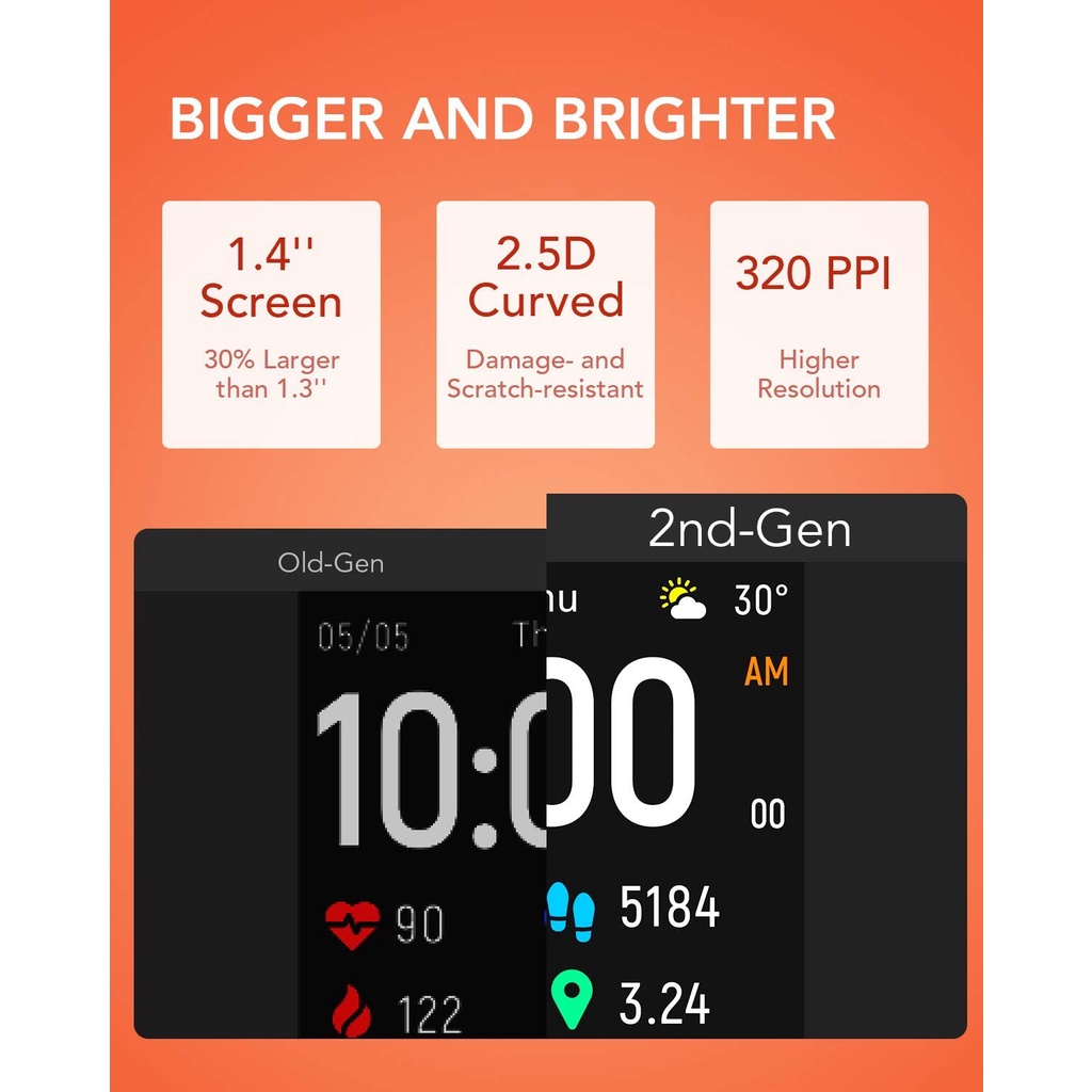 Đồng hồ thông minh Haylou LS02 có màn hình 1.4-inch bo cong 4 góc với độ phân giải cao đạt 320ppi bao phủ bởi kính cường lực 2,5D. Haylou LS02 sẽ cho bạn một khung hiển thị sắc nét và đẹp mắt. So với phiên bản trước, nó có màu sắc rực rỡ và trong trẻo hơn.