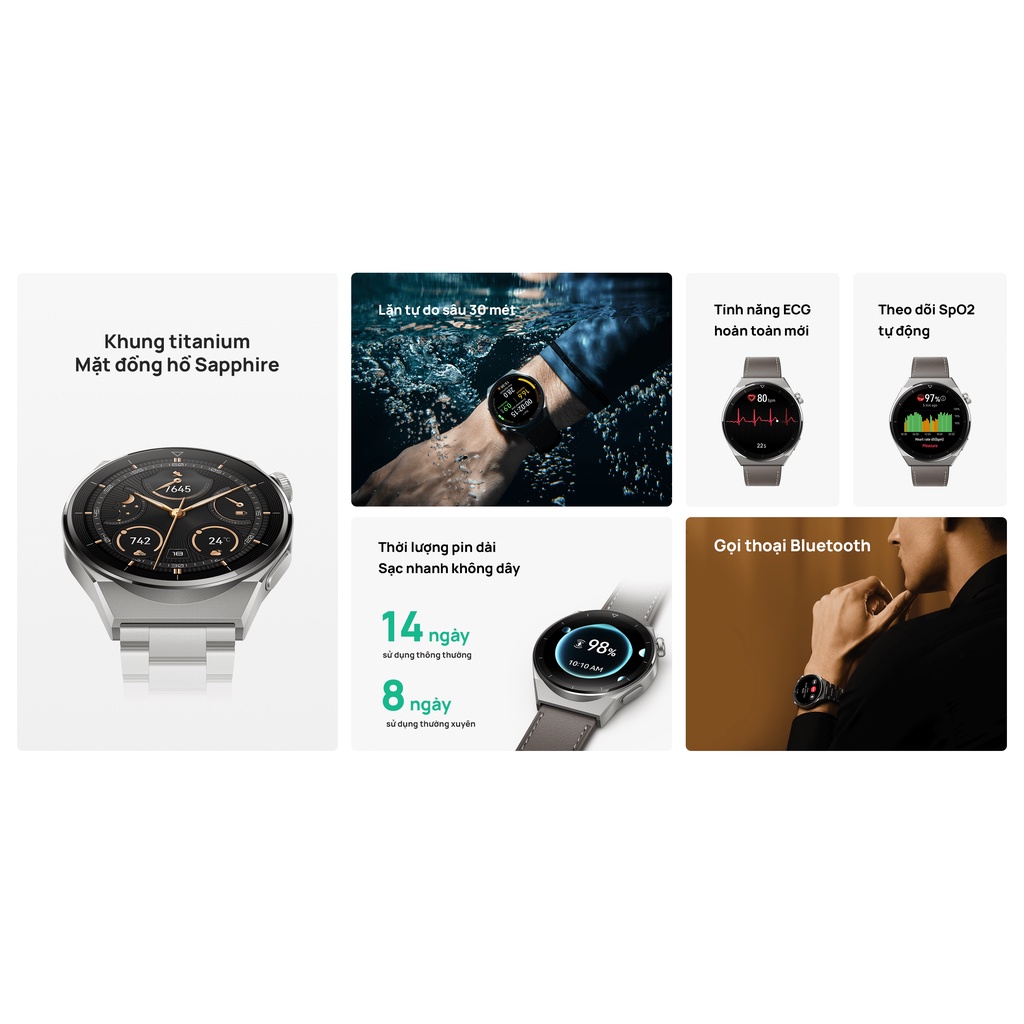 Đồng Hồ Thông Minh HUAWEI WATCH GT 3 Pro | Gốm tinh thể nano | Điện tâm đồ | Lặn tự do | Hàng Phân Phối Chính Hãng