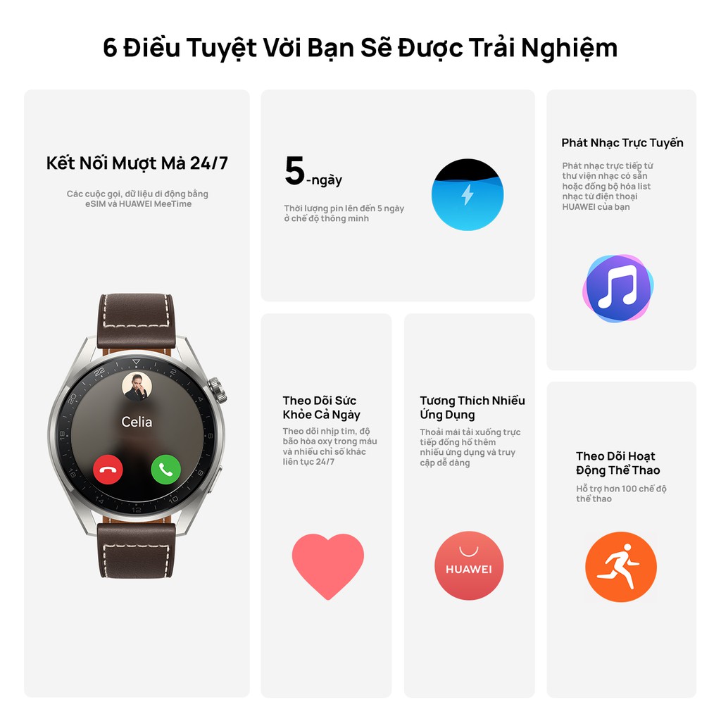 Điện Thoại & Phụ Kiện > Thiết bị đeo thông minh > Đồng hồ thông minh & Vòng đeo tay sức khỏe || Đồng Hồ Thông Minh HUAWEI WATCH 3 Pro | Gọi Thoại eSIM | Pin 5 NgàyCòn hàng