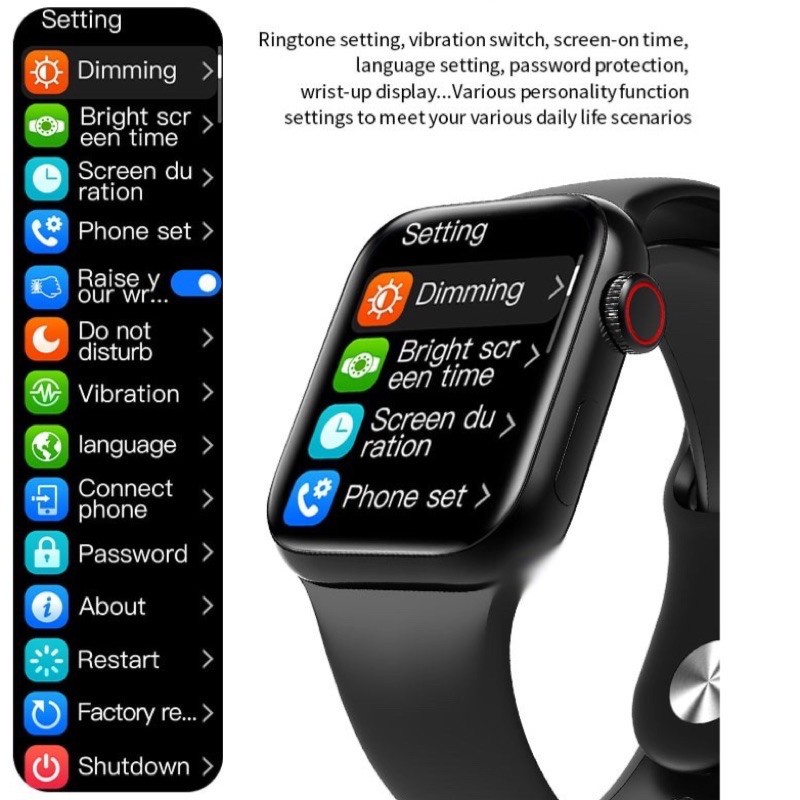 Đồng Hồ Thông Minh Hw12 Màn Hình Tràn Viền Cảm Ứng Kết Nối Điện Thoại Nghe Gọi, Thay Ảnh Nền Và Dây Đeo Tùy Ý, Núm Xoay